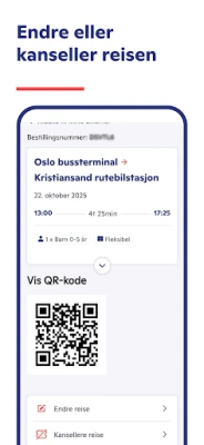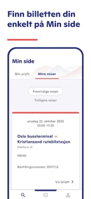 Alle dine billetter, både de aktive og de som er fullført, samles trygt på ett sted, noe som gir deg en oversikt du aldri har hatt før. Ingen flere bortlagte papirbilletter eller forvirring om hvilken reise som gjelder. Appen sikrer enkel og sikker oppbevaring av billetten din fra kjøp til ankomst. Skulle planene dine endres, tilbyr appen også enestående fleksibilitet. Du har full mulighet til å endre eller til og med kansellere billettene dine direkte i appen, noe som gir deg friheten til å justere reiseplanene dine etter behov uten unødvendig stress.
