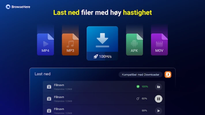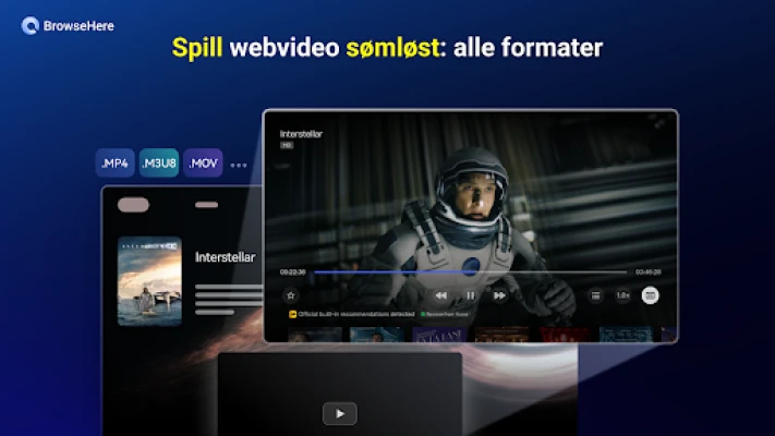 Med BrowseHere blir interaksjonen med innhold en lek. Vår integrerte nettideospiller lar deg nyte nettvideoklipp i storformat, komplett med bokmerker og undertekster, alt enkelt å styre med fjernkontrollen. Frigjør deg fra å taste; bruk stemmen din for å søke etter innhold på hvilket som helst språk, og opplev umiddelbare resultater. Lei av irriterende annonser? BrowseHeres avanserte annonseblokkeringsteknologi fjerner forstyrrende pop-ups, video- og bannerannonser automatisk, og sikrer en uavbrutt visningsopplevelse. I tillegg gir BrowseHere deg mulighet til å hente ulike filtyper, som APK-er, videoer og bilder, direkte fra nettet, med en oversiktlig status over dine hentede elementer.