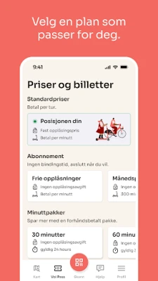 Voi tilbyr fleksibilitet, enten du foretrekker en smidig e-scooter for korte, raske forflytninger, eller en komfortabel elsykkel for lengre distanser i utvalgte byer. Skreddersy din reiseopplevelse med diverse betalingsalternativer. Optimer utgiftene med et Voi Pass, som kan inkludere gunstige minutter og ubegrensede opplåsinger, eller velg å betale kun for den enkelte turen. Prisstrukturen tilpasses lokasjon, tidspunkt og valgt kjøretøy. Voi gjør det enkelt å holde oversikt, med detaljert prisinformasjon og tilbud direkte i appen. Enten du er hjemme eller på reise, finner du Voi i over 100 byer over hele Europa, og inviterer deg til å oppdage verden på to hjul.