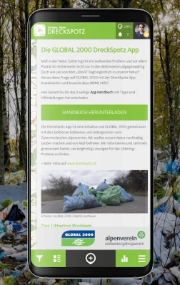 Forsøpling er et globalt problem, selv i urørt natur. Med DreckSpotz App fra GLOBAL 2000 kan du bidra til å kartlegge hvor mye søppel som finnes. Din innsats hjelper oss å forstå og bekjempe plastforurensning.