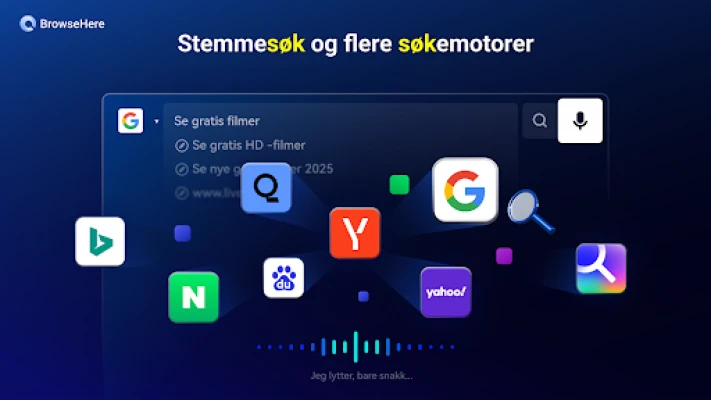 Med BrowseHere blir interaksjonen med innhold en lek. Vår integrerte nettideospiller lar deg nyte nettvideoklipp i storformat, komplett med bokmerker og undertekster, alt enkelt å styre med fjernkontrollen. Frigjør deg fra å taste; bruk stemmen din for å søke etter innhold på hvilket som helst språk, og opplev umiddelbare resultater. Lei av irriterende annonser? BrowseHeres avanserte annonseblokkeringsteknologi fjerner forstyrrende pop-ups, video- og bannerannonser automatisk, og sikrer en uavbrutt visningsopplevelse. I tillegg gir BrowseHere deg mulighet til å hente ulike filtyper, som APK-er, videoer og bilder, direkte fra nettet, med en oversiktlig status over dine hentede elementer.